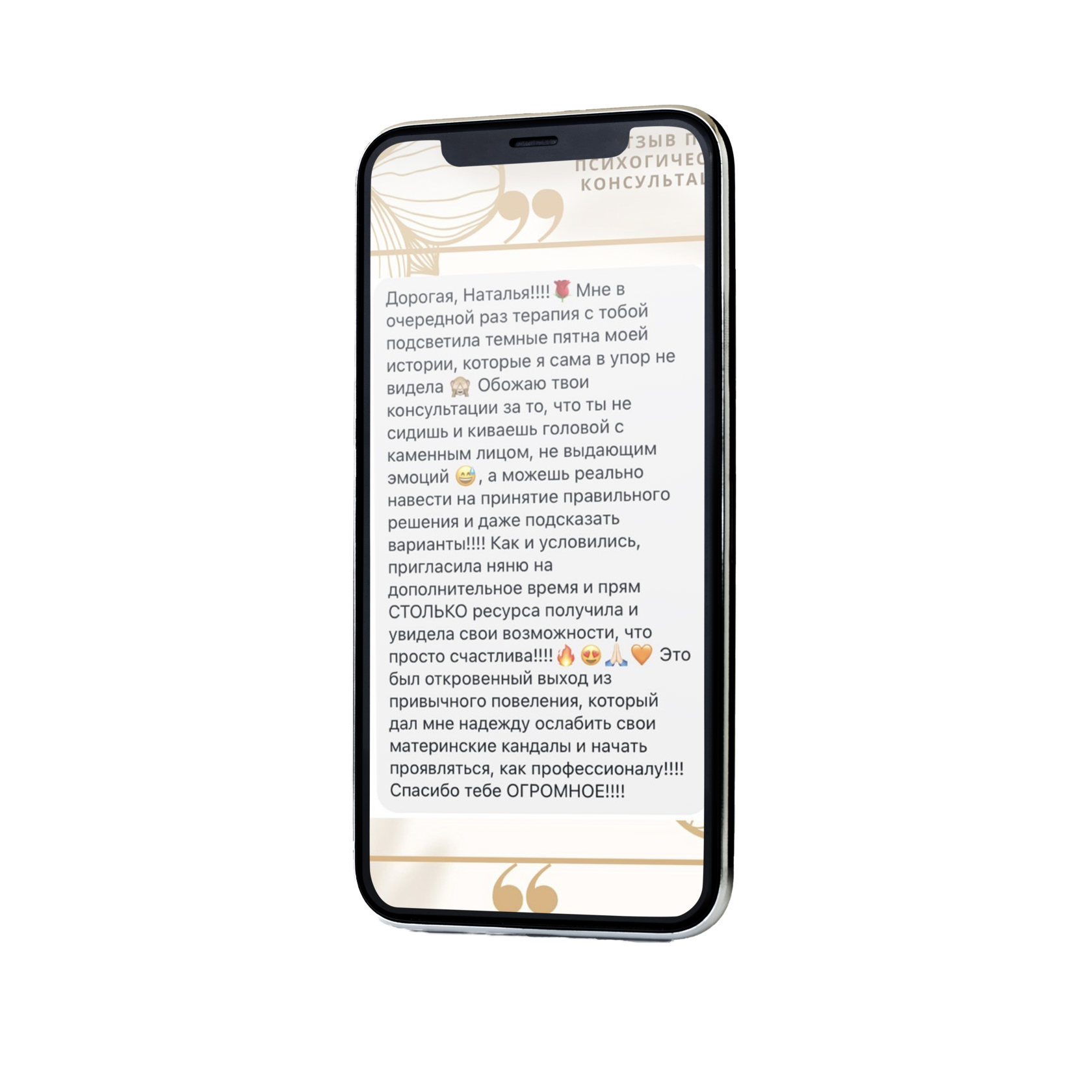 возможно. И конечно же море слёз, куда же без них. Но потихоньку, с каждой следующей консультацией этот груз уходил, пришло понимание самоценности, самодостаточности, любви к себе, понимание, как брак подстроить под себя, а не подстраиваться самой, увидела свои внутренний стержень, опору саму на себя и поняла, что я хочу жить СВОЕЙ счастливой жизнью. Да, именно своей, не подстраиваясь ни под мужа, ни под маму, ни под работу, а наоборот все это подстраивать под себя, рисковать и расширять свои границы. И за это все я очень благодарна вам, Наталья.